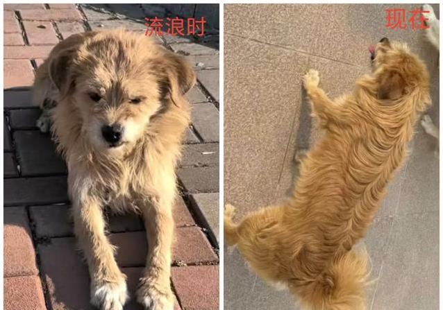 小黄这次可是视频里的明星。它的毛色亮得像刷了层金光,活脱脱一只小金毛的派头。想当初它流浪时瘦得皮包骨,现在吃得好,营养足,毛发蓬松得像个毛绒玩具,看着都想上手撸一把。